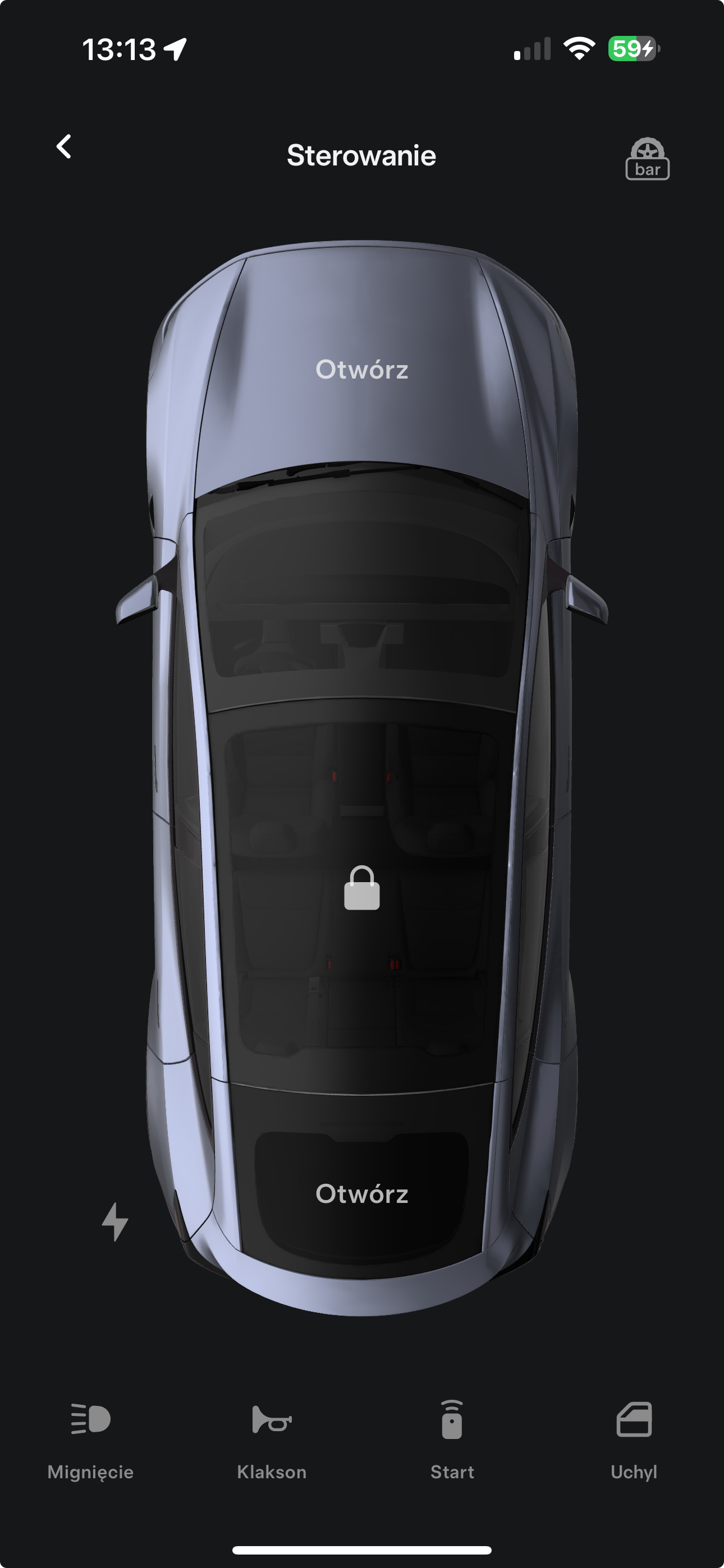 Kontroluj samochód z aplikacji Tesla w telefonie